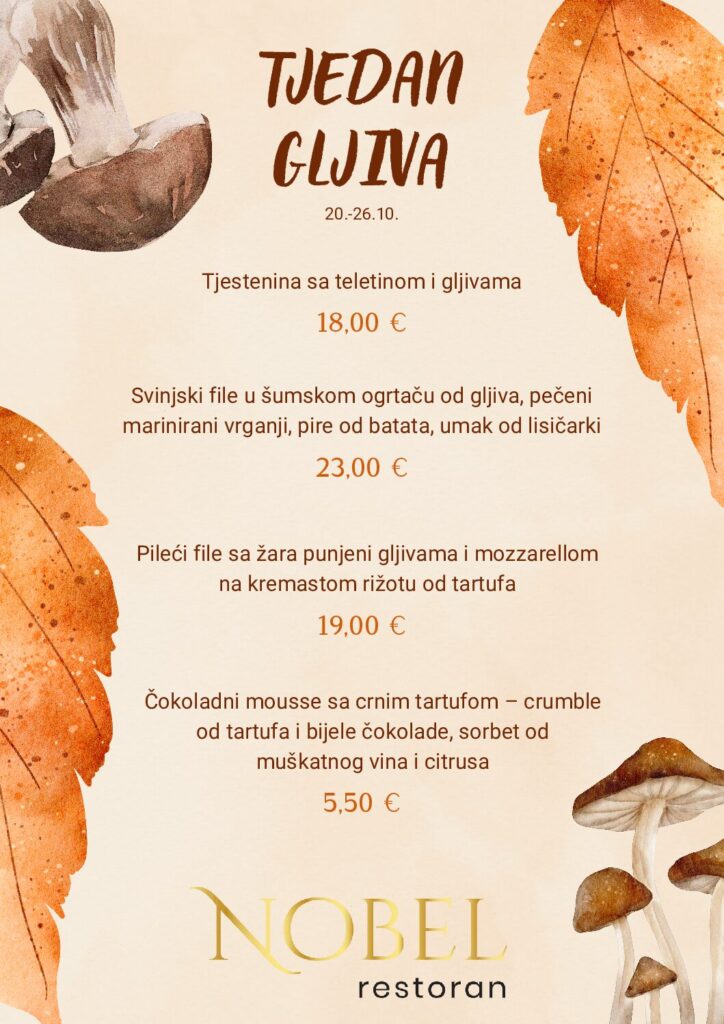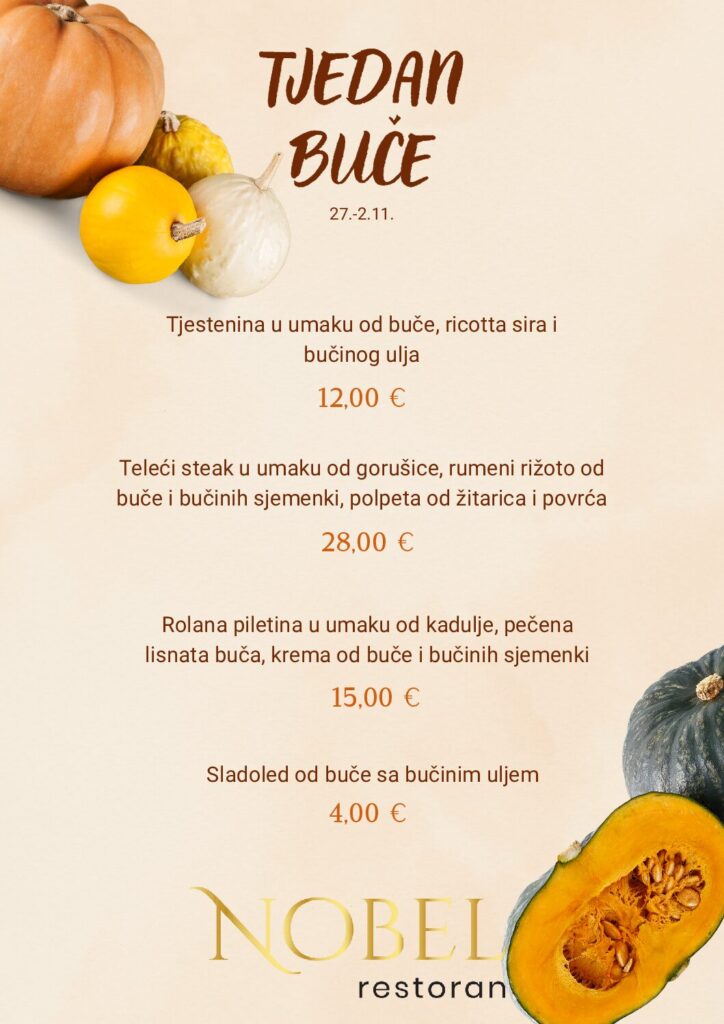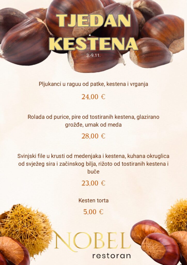 Kesten, bundeva, gljive i drugo sezonsko bogatstvo sada su glavne zvijezde naših tanjura. Uz pomno birane sastojke, pažljivu pripremu i harmoniju okusa, želimo vam dočarati sve ono najljepše što ovo godišnje doba nudi – toplinu, ugodu i uživanje u svakom zalogaju.